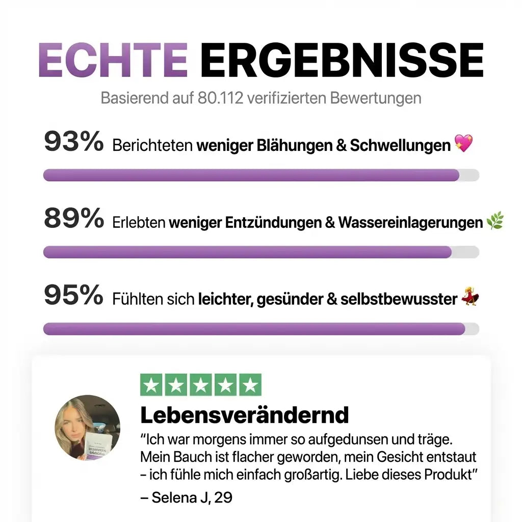 Tschüss, Wassergewicht! Dieses Produkt ist anders – sanft, 100% natürlich und es wirkt wirklich! Ich fühle mich leichter, mein Gesicht ist weniger geschwollen und sogar meine Finger fühlen sich nicht mehr aufgedunsen an.