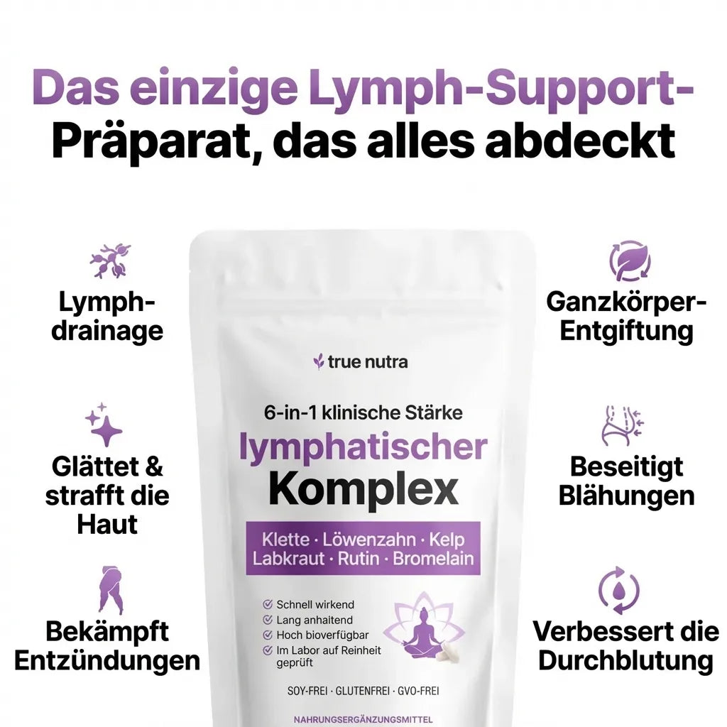 Während andere kaum etwas bewirken, verwendet unser 6-in-1 Lymphatischer Komplex sechs klinisch dosierte, kraftvolle natürliche Inhaltsstoffe, um die Drainage zu unterstützen, Schwellungen zu reduzieren und die Durchblutung zu fördern – mit schnellen, sichtbaren Ergebnissen.